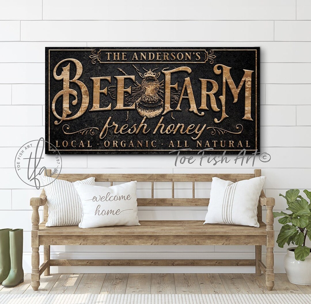 Bee Farm Sign Modern Farmhouse Wall Decor Custom Family Name Etsy Ireland